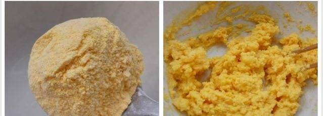 首先,準備玉米面一勺,用開水和開;凡是牽涉到粗糧,用開水燙一下,成熟後口感更好。