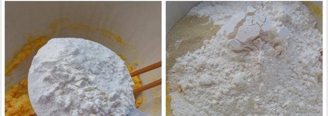 加入白面四勺,發酵粉5克;也就是說玉米面占到總量的25%上下的樣子最佳。