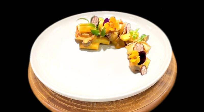 白木耳、三色堇、火紅苗、甜豆、鹽、味精、糖、黑松露醬、蔥油