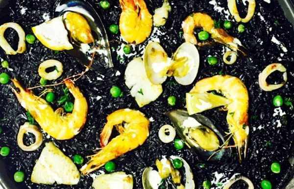 意大利米90克、各種海鮮200克、洋蔥40克、番茄半個、青豆30克、檸檬半個、荷蘭芹、蒜蓉10克、海鮮底湯、墨魚汁15毫升、幹白、鹽、胡椒粉、色拉油、蛋黃醬