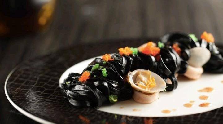 蛤蜊、魷魚等海鮮加入切碎的歐芹和羅勒、辣椒一起煸炒,放入煮好的墨魚汁意面攪拌後出鍋,用魚子裝飾即可