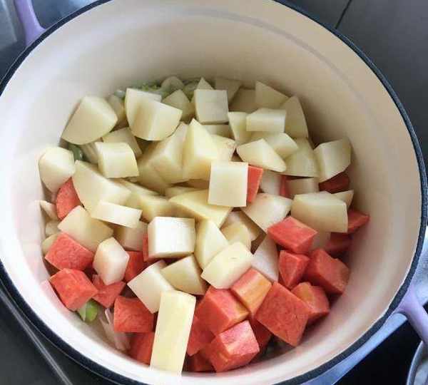 第6步、土豆和紅蘿卜切塊。