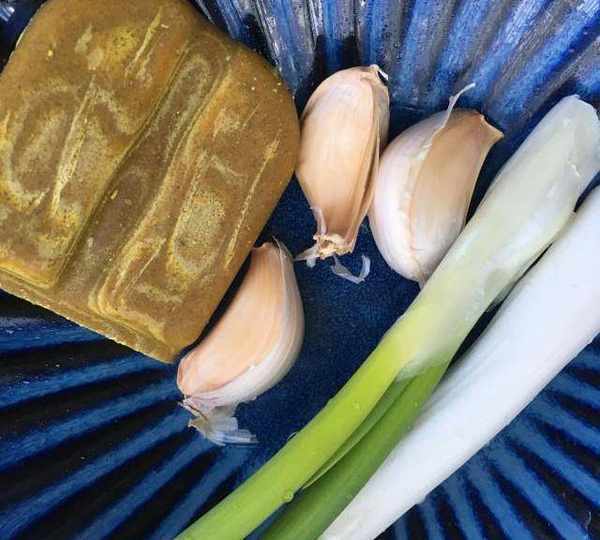 第4步、蔥蒜和咖喱塊備用。