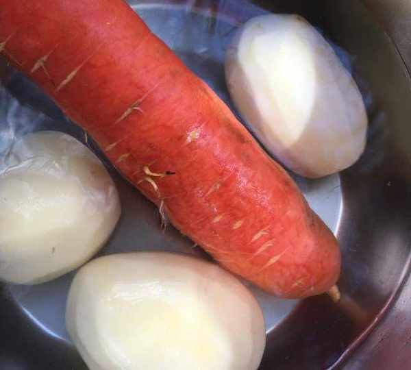 第1步、土豆去皮,紅蘿卜洗凈備用。