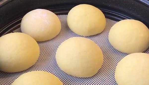 體積明顯變大,我們把面團放在案板上,邊加面粉邊揉,一直揉到面粉變成這樣光溜溜不黏稠的狀態就可以瞭。然後直接搓成長條,下大小均勻的面劑,我們取一個小面劑給它揉一下,然後揉圓整理成饅頭狀,全部做好備用。蒸籠上面放上籠佈,放上面團,蓋上蓋子,二次醒發。面團體積明顯變大,變得胖乎乎的,用手拿起來是輕飄飄地就可以瞭。