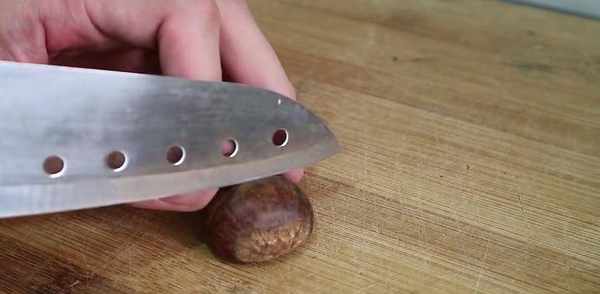 1、 將板栗清洗幹凈,用刀在板栗上切一個小口。