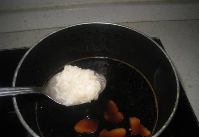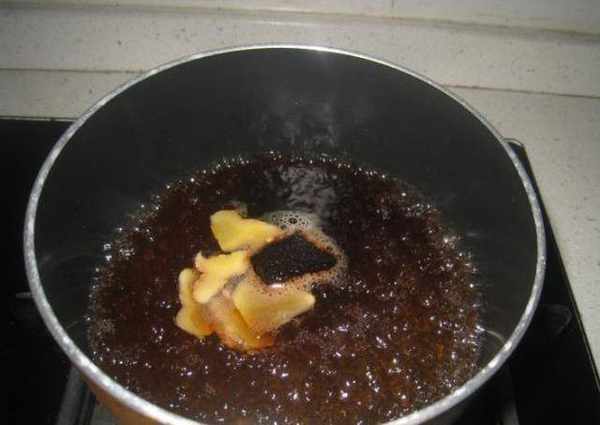 1、鍋中加入適量的水,然後加入4-5片薑片,煮出生薑的香味,之後再放入紅糖一起煮,煮至紅糖完全融化。