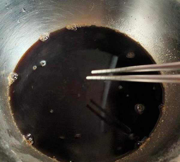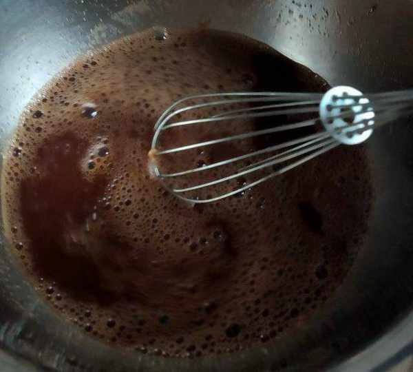第4步、把紅糖放入盆裡,再把開水倒入盆裡,用筷子攪拌至紅糖完全融化。
