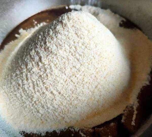 第9步、普通面粉玉米面木薯粉一起過篩到盆裡。