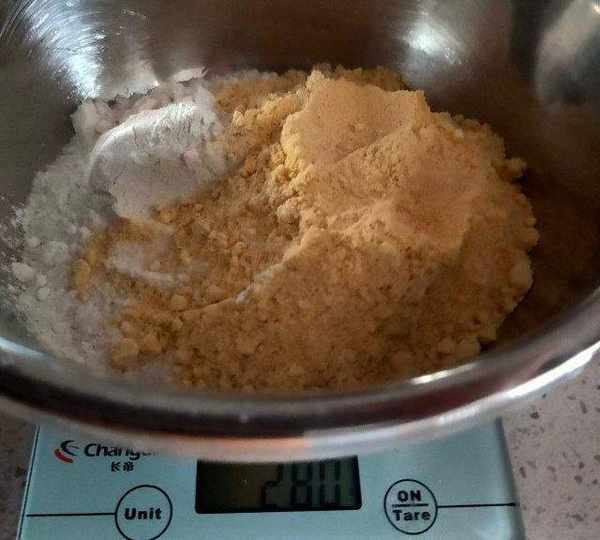 第1步、玉米面和普通面粉稱重備用,1:1。