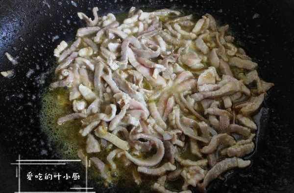 2.鍋中多放些食用油,等油燒熱後先放入切好的豬肉絲翻炒,先把豬肉絲炒熟。