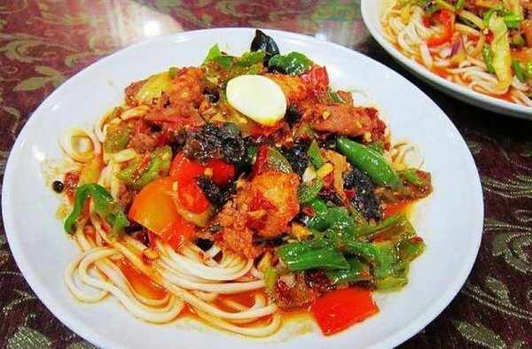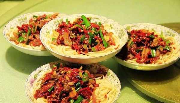 新疆拌面,又名拉條子,是新疆人的主食。它起源於河西走廊移民。後來隨著河西走廊居民逐漸向北疆移民,就在新疆逐漸傳播開來,做法也是多種多樣,因為它的烹飪方法就是以菜拌面而得名成“新疆拌面”。