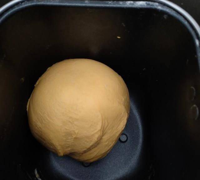 原料:高筋面、雞蛋、白糖、黃油、南瓜泥、鹽、酵母。