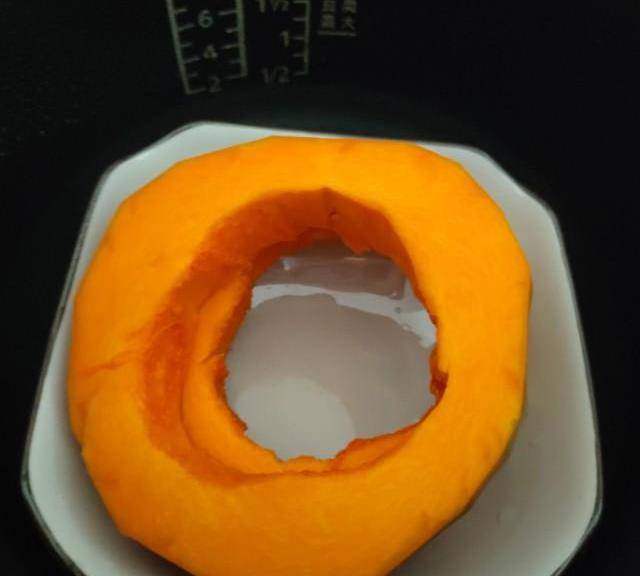 第1步、南瓜洗凈去皮去瓤,放入碗中高壓鍋壓10分鐘。