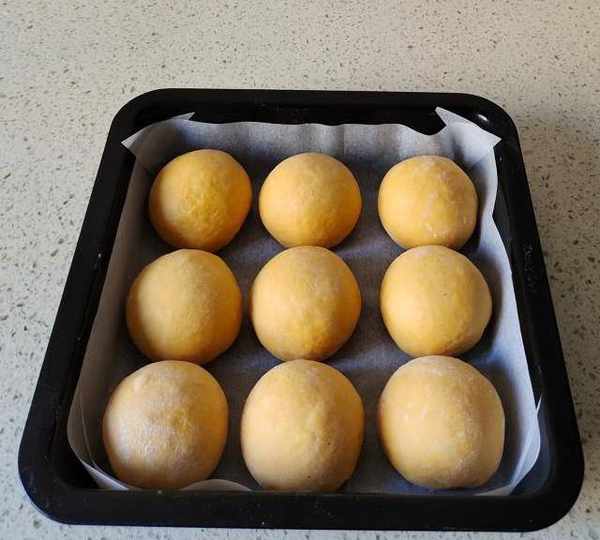 第8步、裝入鋪有油紙的烤盤中二次發酵。
