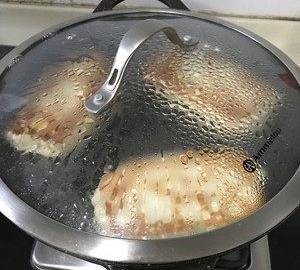 我也做瞭薄一點的就不用加水燜瞭,鍋中加油,小火慢慢煎,經常翻面就可以瞭。