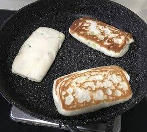 開小火,底部發黃瞭,就翻面。