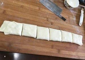 取一個,搟長,往中間對折3折。