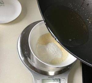 30面粉30克熱油+鹽,拌勻。為油面糊。