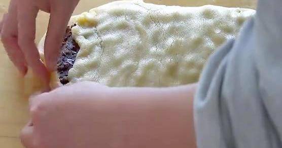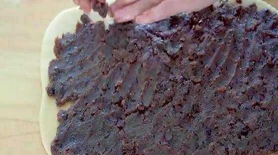面板上滴少許的食用油,莫尼房山取一半的面團整理一下展開,改成方形的面片。好我想問一下。上一層豆沙餡,取剩下的另一半面團,改成同樣大小的面片,卷起來,撲到另一張上面,整理一下,不要露餡,