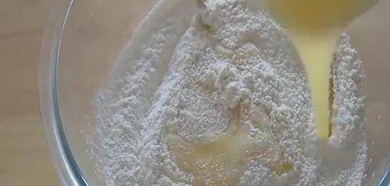 碗中打入一個雞蛋,倒入80克白砂糖,用打蛋器攪勻打發到發白即可,不要過度打發加入80克食用油攪勻。250克普通面粉,4克泡打粉教育。攪打好的雞蛋液倒進去,邊倒邊攪拌,攪拌到沒有幹面粉,揉成光滑的面團,