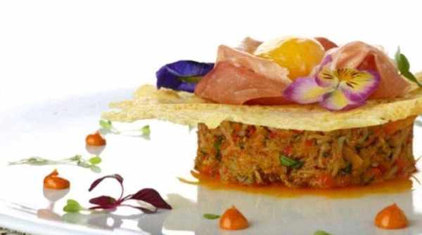 平底鍋加熱把步驟3炒勻放入模具裝盤,擺上做好的芝士薄脆、火腿、溫泉蛋加裝飾即可
