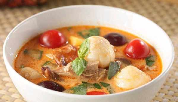 烤鴨、荔枝、菠蘿、紫蘇葉、小番茄、紅咖喱、椰汁