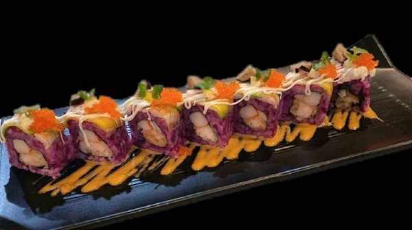壽司米、紫薯泥、天婦羅黑虎蝦、壽司海苔、黑松露、壽司蝦、芒果、牛油果、蟹柳、飛魚籽、千島醬、沙拉醬