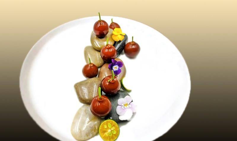吉利丁片用純凈水泡開,剩餘的150克鹵湯燒熱,放入泡開的吉利丁片煮開關火,讓鹵湯靜置,取出定型好的鵝肝裹上鹵湯,待外皮定型裝盤即可