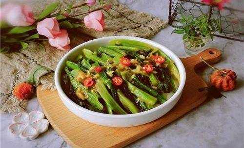 【食材】:油麥菜500g、薑末3g、蒜末5g、幹辣椒5g、蠔油5ml、胡椒粉2g、豬油20ml、雞精少許、食鹽適量