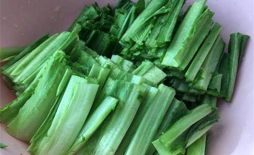 2.咱們平時在炒油麥菜之前,先不著急,把已經洗幹凈的油麥菜水分瀝幹,要完全的瀝幹,不然炒出來的油麥菜就很容易苦苦的,還老,特別的影響口感。