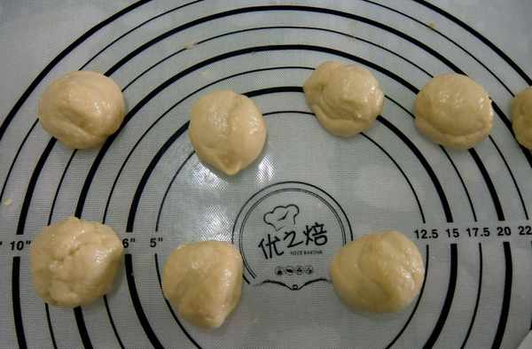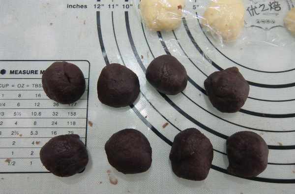 5.將豆沙餡分成約30克一份的小團,搓成圓球。