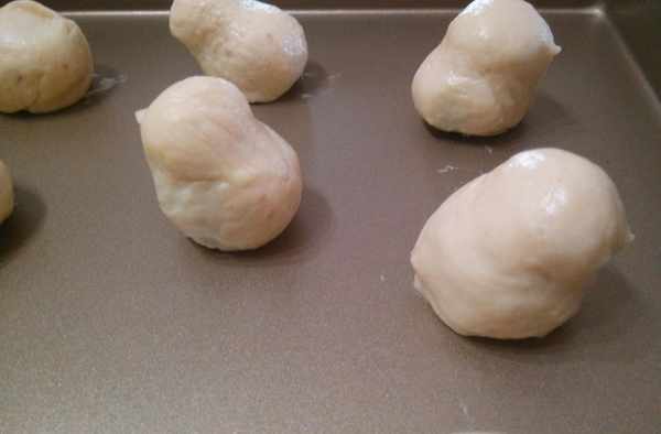 7.用手捏出小雞的形狀,放入烤盤中。當然你喜歡什麼形狀,都可以捏,雞年麼,就捏個小雞吧。