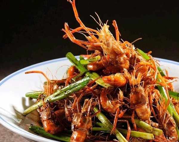 倒入炸好的河蝦翻炒均勻,裝盤即可