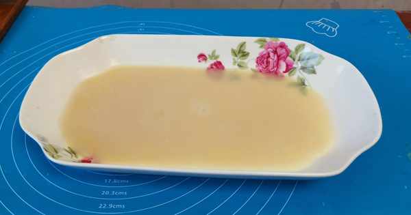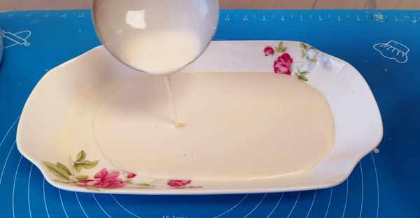 首先準備一碗面粉放入碗中,加入兩克食用鹽,再用相同的碗準備一碗清水倒在裡面,然後順著一個方向不停地攪動,這一步要多攪一會兒,這樣做好的成品才會更精到攪動,大概有五分鐘成特別粘稠的狀態,再準備大半碗水,少量的倒在裡面也是一邊倒一邊攪,最後讓面糊和水充分的融合在一起,然後靜止15分鐘,接著準備一個大盤子,在表面刷一點食用油,將靜置好的面糊成一勺,放入盤中,之後給它搖勻,讓它鋪勻盤底。