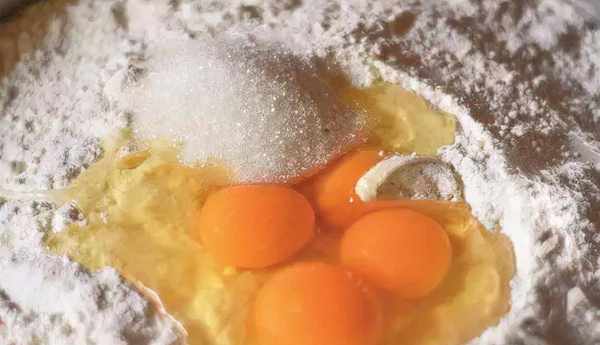 調料; 雞蛋4個,老面100克,白砂糖55克,黃油20克。