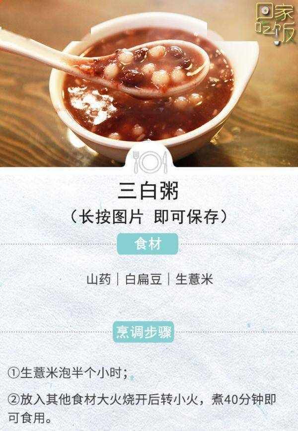 脾虛痰濕的人群,如有腹瀉便溏、胃寒胃痛、遇冷加重、手掌中心發青發黃、面部中央青黃等表現的,可以試試健脾祛濕化痰的三白粥。