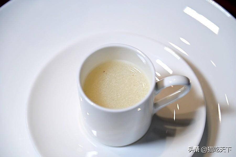 餐前暖胃湯,雞湯和百合熬制而成,溫暖濃鬱鮮香醇厚,一杯下肚渾身舒暢。