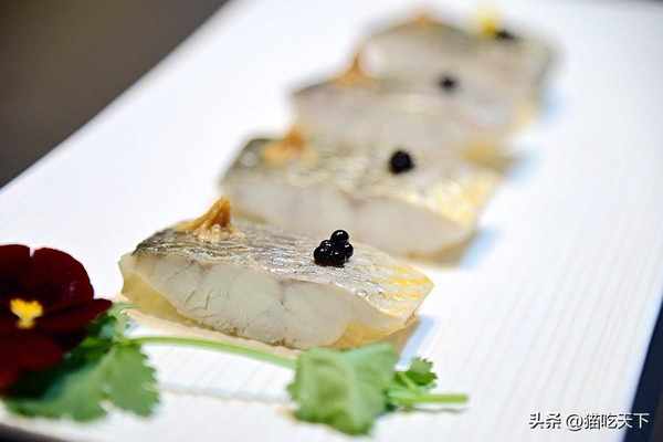 潮汕巧工魚凍,魚肉潔白魚皮清亮,閃著誘人的光澤,口感細嫩滋味鮮美,再加上點綴的魚子醬,更是錦上添花贊不絕口。
