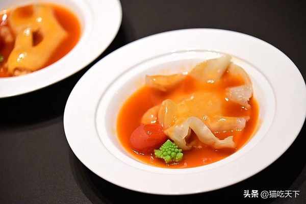 鮮茄汁焗大花膠,花膠大塊厚實,加入自制番茄汁用焗的方式烹制,口感嫩而彈牙,番茄汁的酸爽更突顯花膠的鮮甜,愛不釋手!