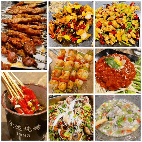 除此以外烤海腸、醉蟹鉗、辣炒蝦爬子、烤鳥貝、烤牛肉筋、生牛肉串、老醋四樣、辣炒花蓋蟹、辣炒蟶子、烤棉花糖、烤金針菇、烤豆腐、炒方便面等,你都可以點嘗嘗,真是又辣又香。你還可以點個疙瘩湯解解膩~