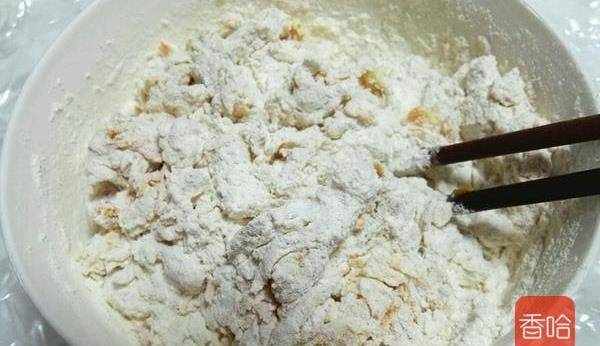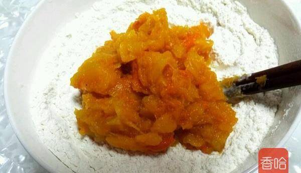 5.把南瓜泥放入面粉裡