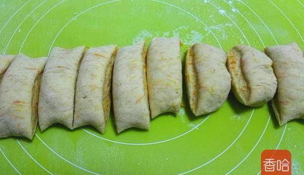 9.取出面團揉出氣泡,搓成長條切成30克左右的塊