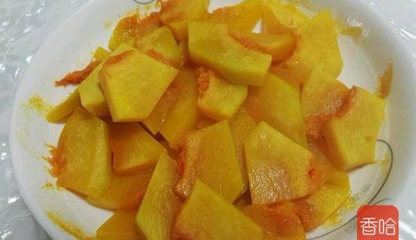 1.準備材料:南瓜去皮洗凈切片