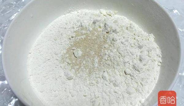 2.面粉裡加入酵母粉混合,攪拌均勻。