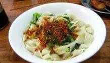 材料:面粉,青菜,鹽,生抽,醋,辣椒面