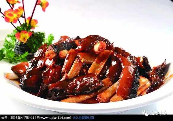 主料:豬肘1000克,海參(水發)250克。