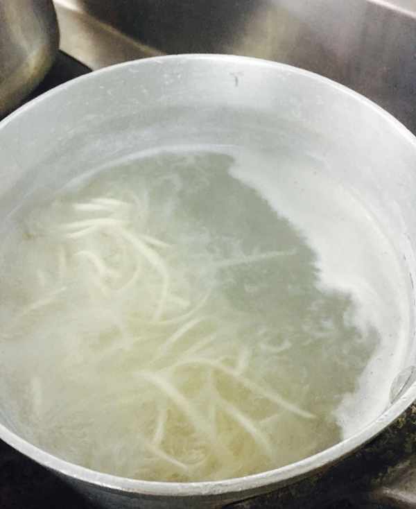 第二步:鍋中加水燒開下掛面煮熟撈出,然後將菜心焯水備用