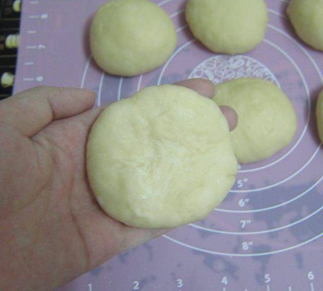第4步、把發酵好的面團排出空氣,分成6份,揉成小圓面團,進行15分鐘中間發酵。
