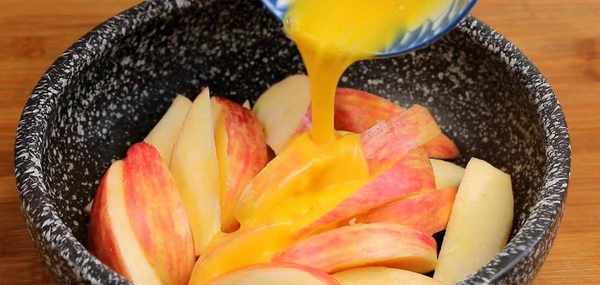 把蛋液澆在蘋果裡,攪勻後倒入絞肉攪肉機裡,